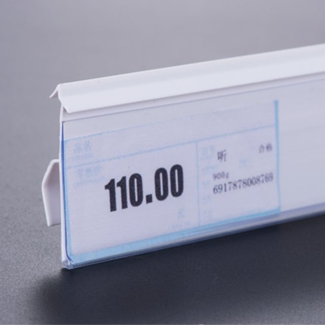 Extrusion data strip for displaying price tags, labels  and tickets in supermaket, retail store and warehouse shelves.
